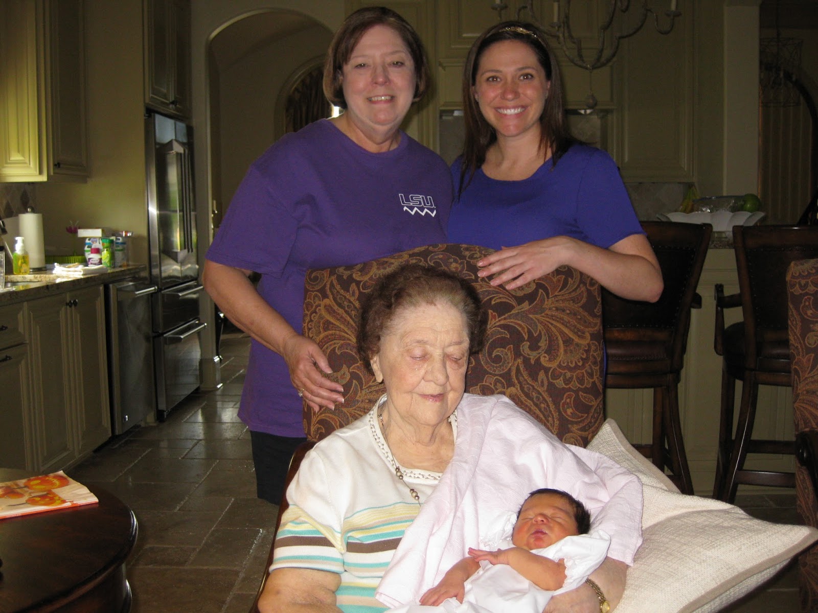 Granny and Grandpa were so excited to meet you! You wore a pretty dress and the white booties Granny and Grandpa gave you. They cried with joy when they saw you.