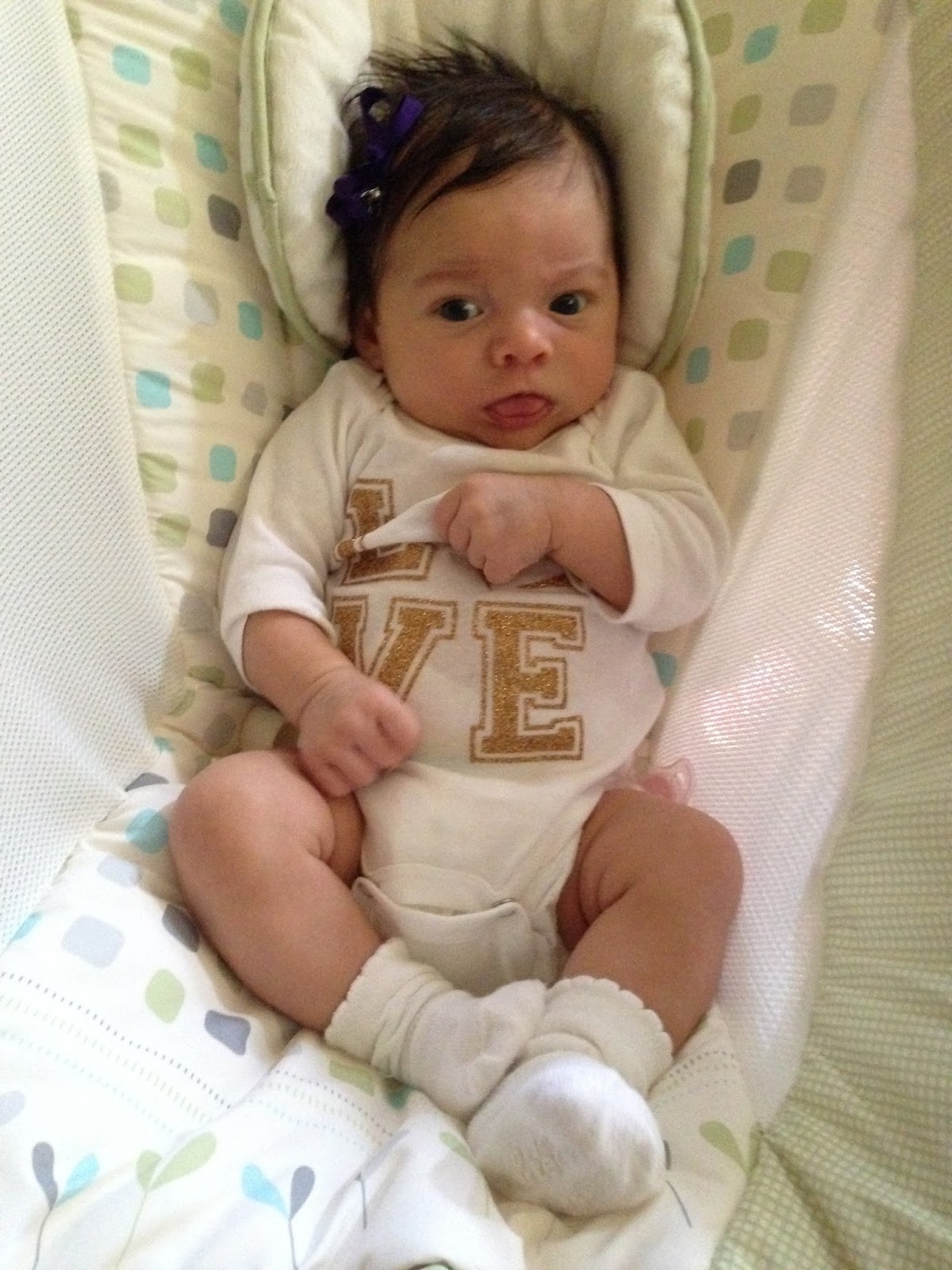 This weekend, Mommy brought you to watch Anna and Charlie's final soccer game. It was a beautiful day, but a little windy, so I bundled you up in your LSU hoodie. On Sunday, Daddy and I brought you to mass for the first time. You were so good during mass! You didn't make a sound. Mommy fed you half way through, and you slept the rest of the time. You were so beautiful in your pumpkin dress.