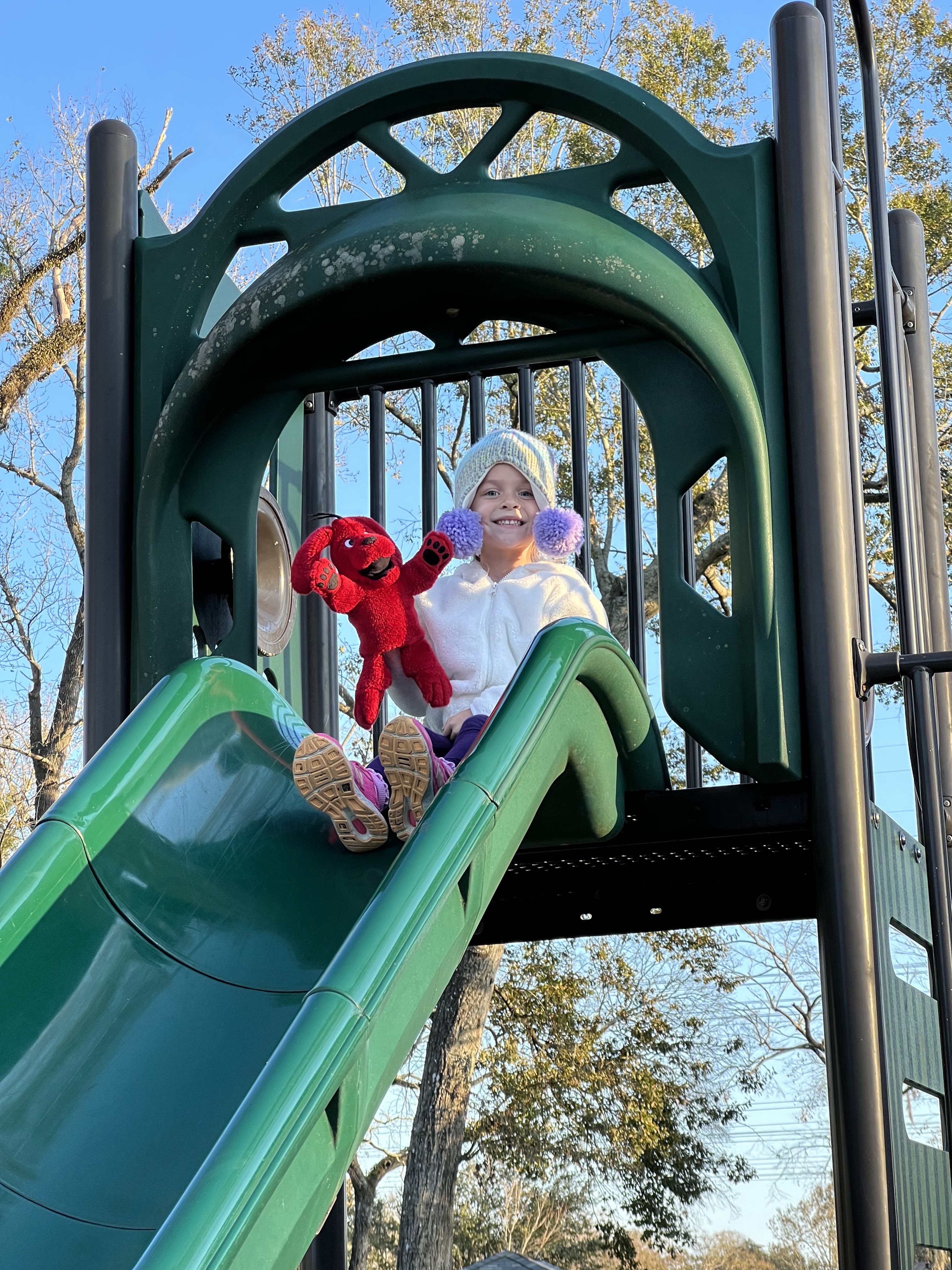 This weekend, Caroline was responsible for taking care of her class pet, Clifford.  She had to bring him wherever she went and take pictures.  We had a fun weekend!  He will be back next weekend when it is Joseph's turn to take care of him.