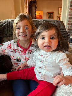Teita and Jeddo invited us over for dinner tonight (grapeleaves!), so we decided to exchange gifts since they will be out of town for Christmas. We loved watching Camilla open her gifts and figure out the wrapping paper. Teita and Jeddo gave you all sweet cards and money, but you have to wait and see they big gift they're giving you on Friday. (A Hot Wheels roller coaster!) Thank you Ray Ray and Natalie for the GIANT Connect-4 Game. They are going to love playing it!