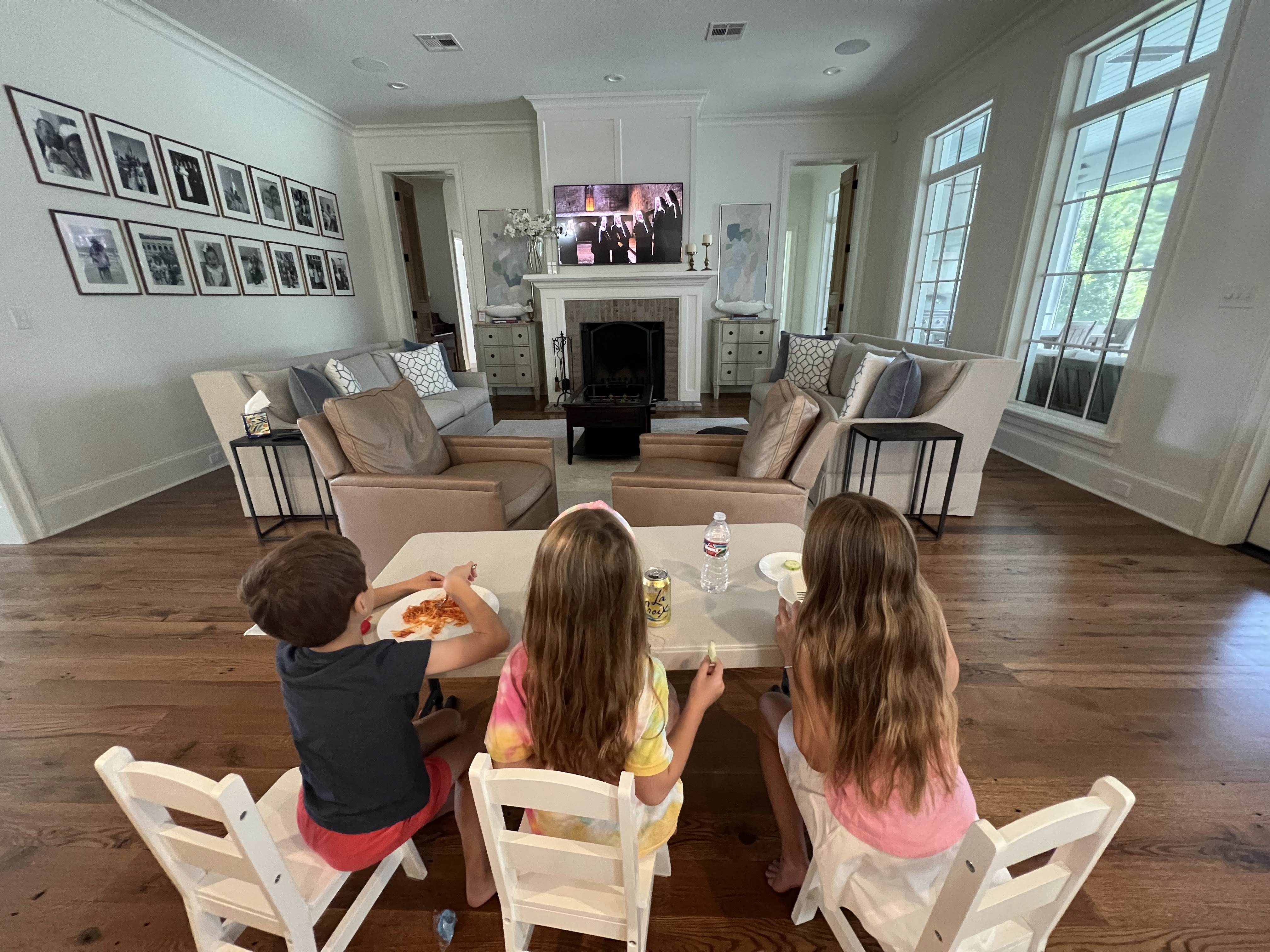 Lunch and a movie... watching The Sound of Music for the first time. The girls loved it. Joseph, not so much.